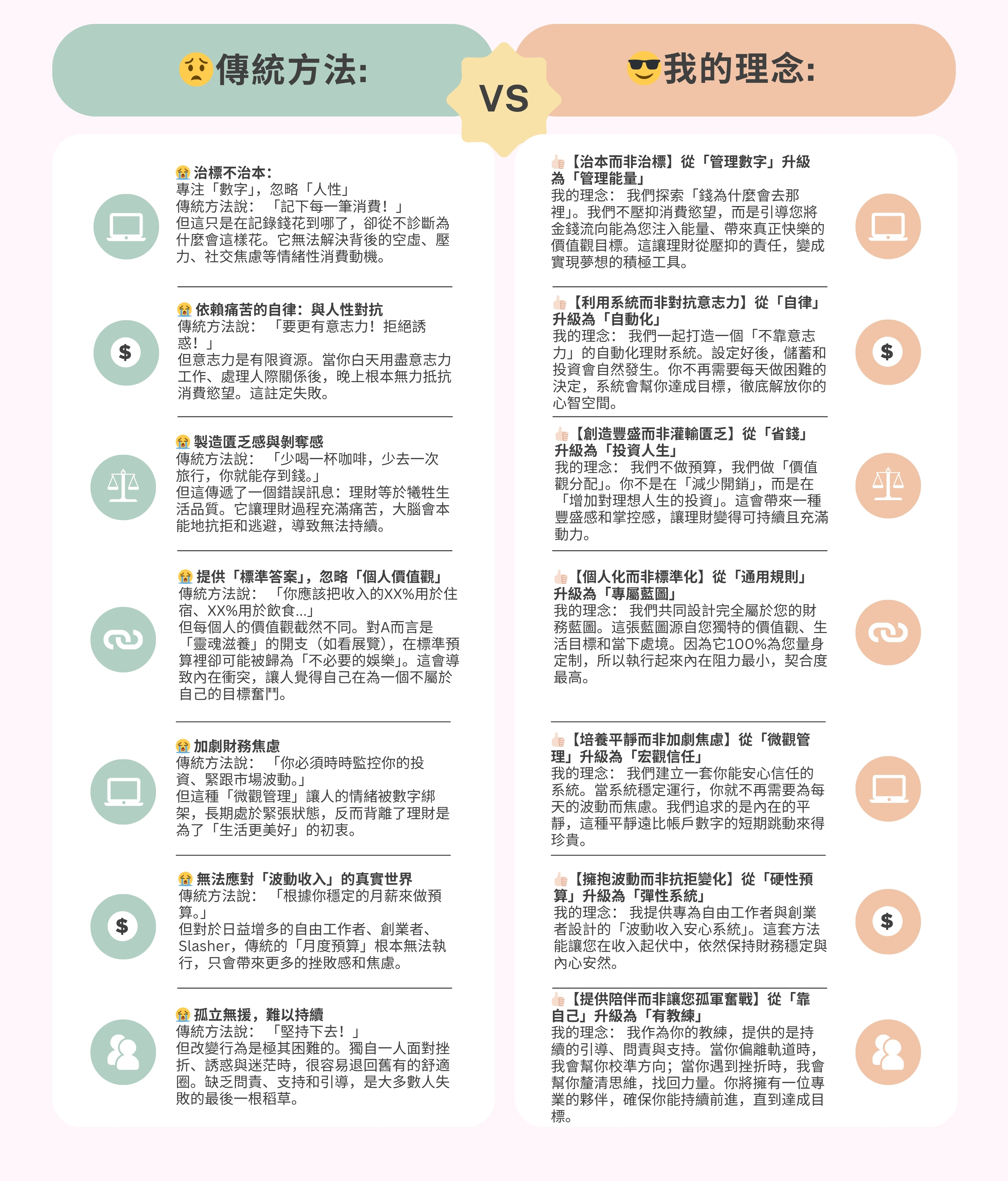 ✅我們會搞清楚對你來說什麼最重要,讓你花的每一分錢都真正為你的幸福服務,而不是活在別人的標準裡